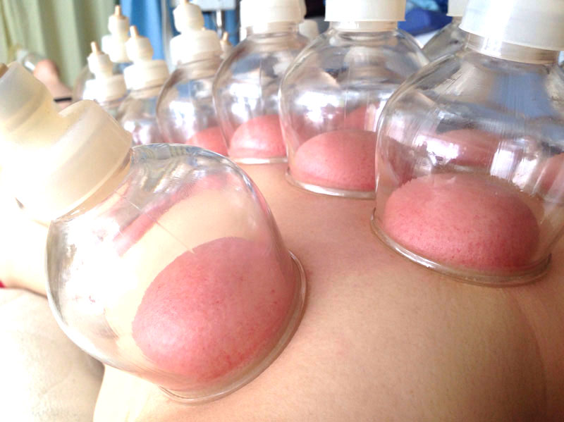 カッピング療法は、電動式または手動式で皮膚に装着させたカップ